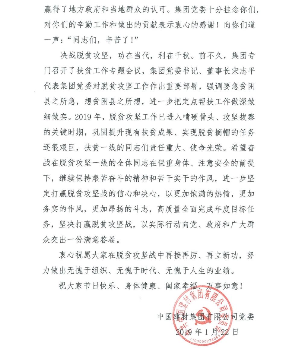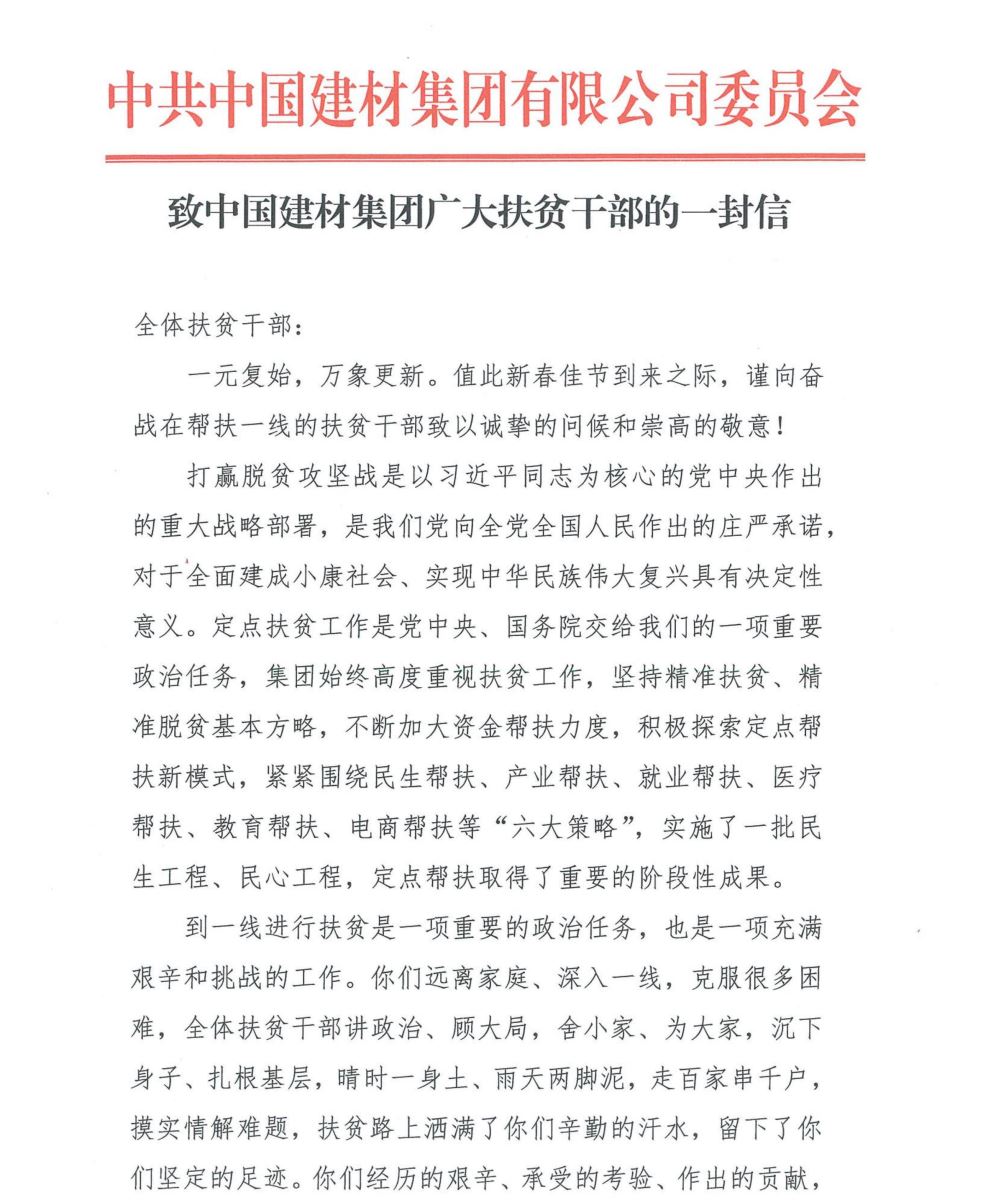致中国建材集团广大扶贫干部的一封信 (db彩票官方)