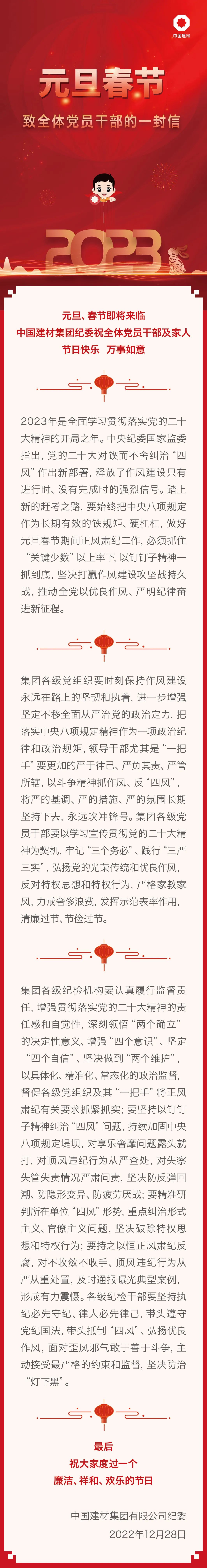 中国建材集团纪委致全体党员干部的一封信