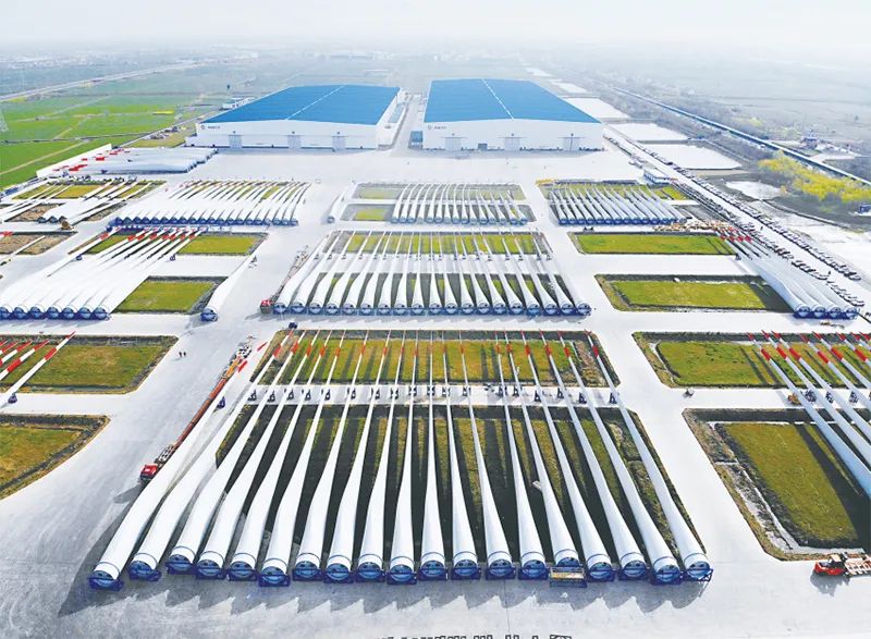 中国建材集团风电叶片年总产能19660兆瓦,产品覆盖1,0兆瓦到15 db彩票安卓版,0兆瓦系列,拥有100余个型号,开发出112米海上风电叶片。图为中国建材集团风电叶片阜宁生产基地。。
