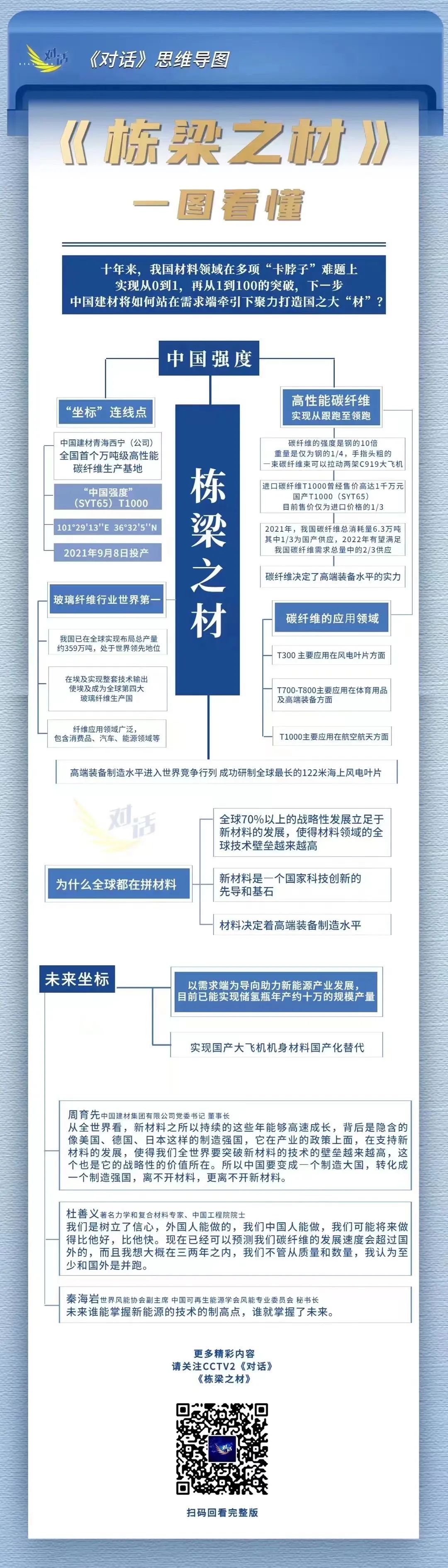 就像我们中国建材,通过了这几年的努力,我们已经很荣幸地成为了宽体客机中后段、后前段和后后段,三段飞机机身的供应商。所以我要是憧憬一下,通过未来几年的努力,中国建材能够实现大飞机机身的梦,真正能够把我们中国建材集团制造的机身装在这个宽体客机上面,能够顺利地成功地安全地飞上蓝天。