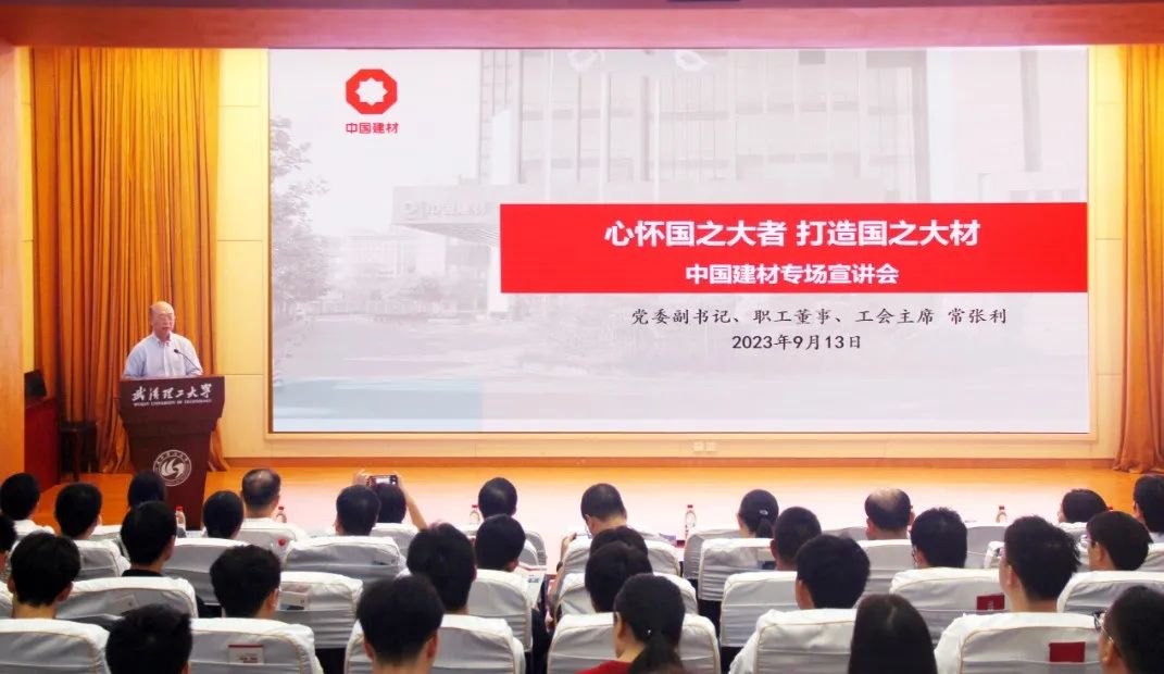 来源:集团党委组织部 发布时间:2023-09-15 (db彩票app下载)9月13日,中国建材集团党委副书记,职工董事,工会主席常张利带队前往武汉理工大学开展专题宣讲,宣讲主题为“心怀‘国之大者’ 打造‘国之大材’ ” db彩票官方,宣讲对象为武汉理工大学材料科学与工程学院2023级材料工程专业硕博士研究生。