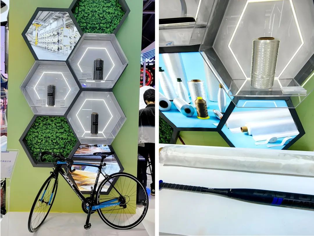 在江苏省展馆展出了中复神鹰的高性能碳纤维和碳纤维自行车 db彩票正版下载,以及南京玻纤院的高性能玻璃纤维和玻纤棒球棍。