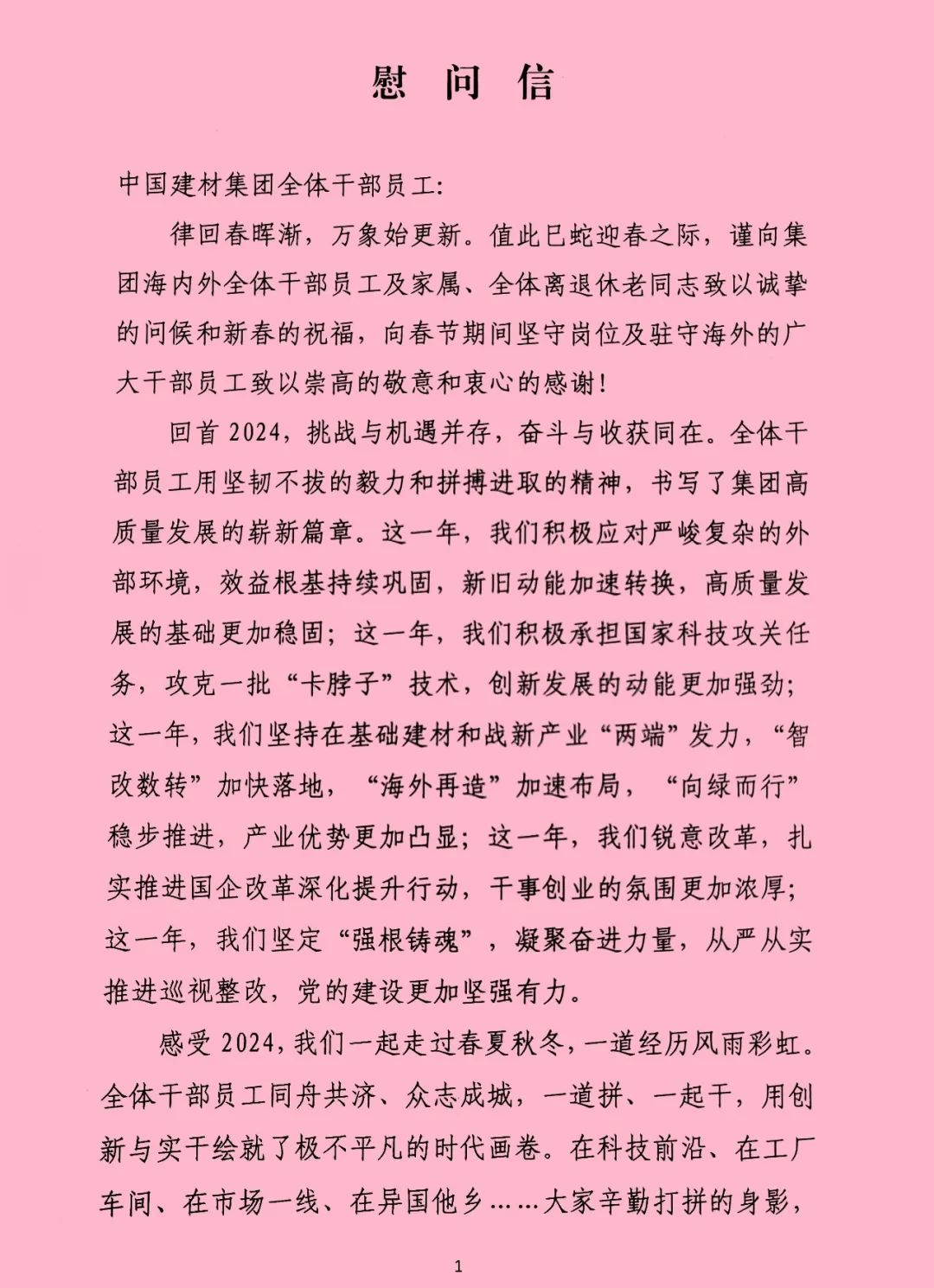 "db彩票注册入口" 致中国建材集团全体干部员工及家属的一封信