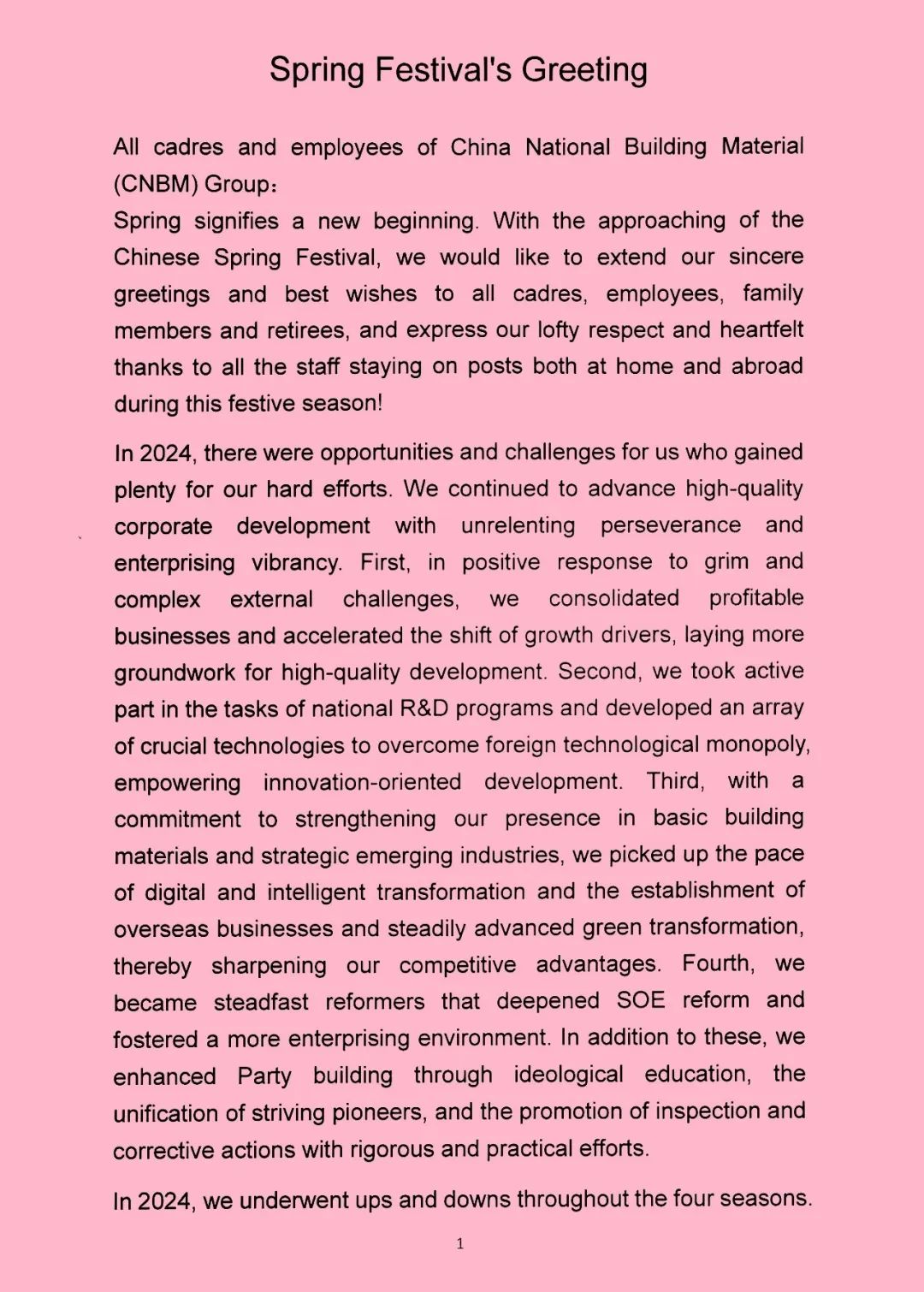 All cadres and employees of China National Building Material (CNBM) Group: