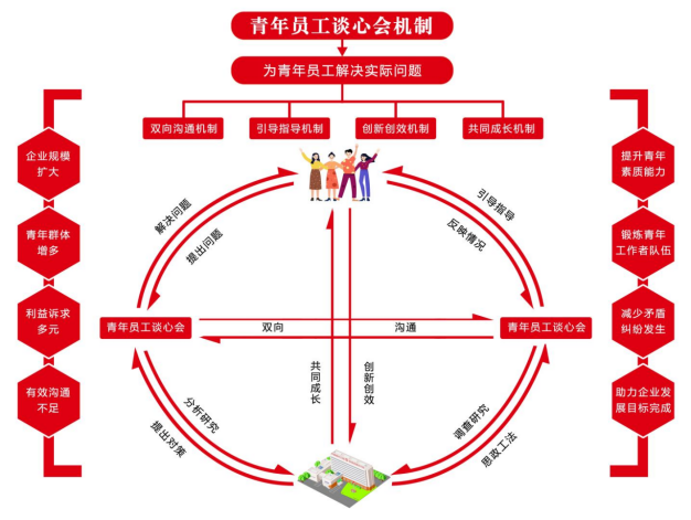 来源:集团团委、中研院 发布时间:2025-05-21习近平总书记在党的二十大报告中明确要求“全党要把青年工作作为战略性工作来抓,用党的科学理论武装青年,用党的初心使命感召青年,做青年朋友的知心人,青年工作的热心人 db彩票官方,青年群众的引路人”,在中国建材集团团委的带领下,中研院团委打造了青年员工谈心会机制,努力做好青年的知心人,热心人,引路人,引导青年创新创效为企业做贡献,该机制也成为凝聚人心,稳定团队,激活关怀员工,吸引人才的留才“秘诀”。