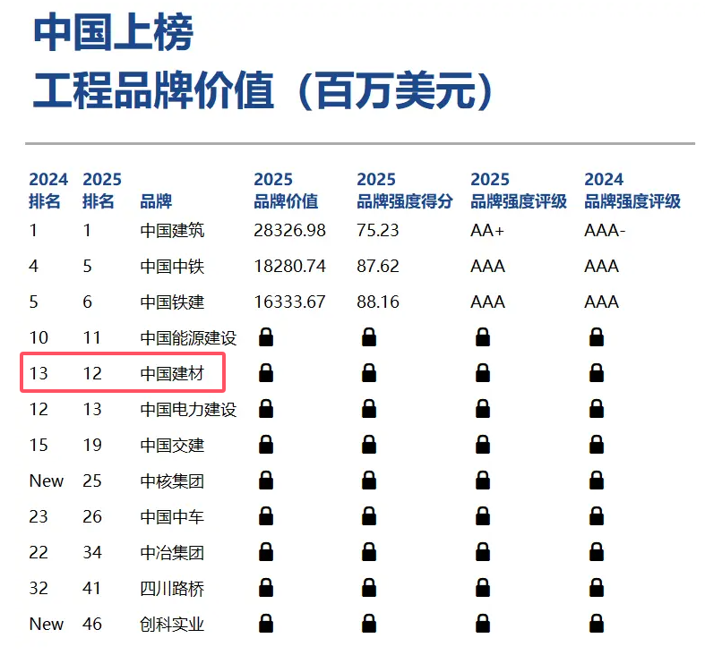 6月20日,《Brand Finance(品牌金融)2025年全球工程品牌价值榜》正式发布,中国工程品牌共有12个品牌入榜,其品牌价值占该行业总品牌价值的30%以上,中国建材集团连续十年入围该榜单,位列全球第12位 db彩票官方。