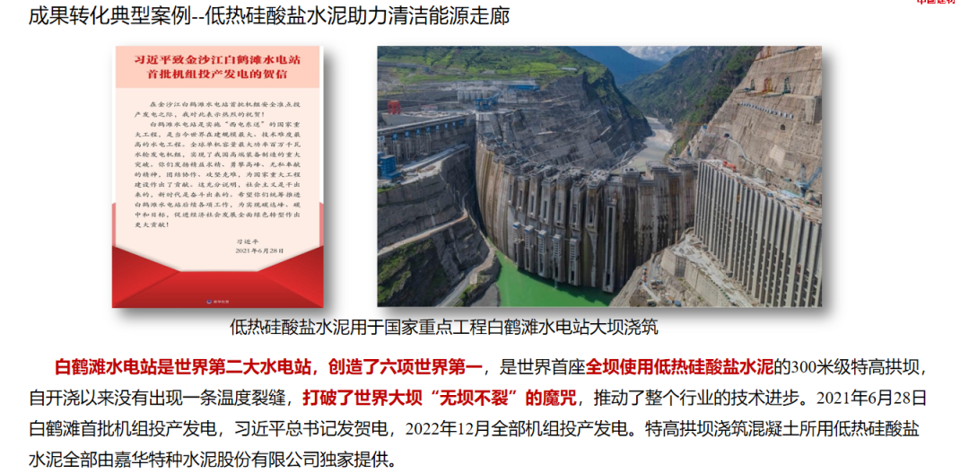 公司研发的低热硅酸盐水泥助力清洁能源走廊建设 db彩票手机版,成功应用于白鹤滩水电站和乌东德水电站,打破了世界大坝“无坝不裂”的魔咒,推动了整个行业的技术进步,公司定制的G级油井水泥被“海洋石油981”深水钻井平台选定为固井专用油井水泥,打破国外油服公司的技术垄断,从而保障深水油气资源高效安全开采。