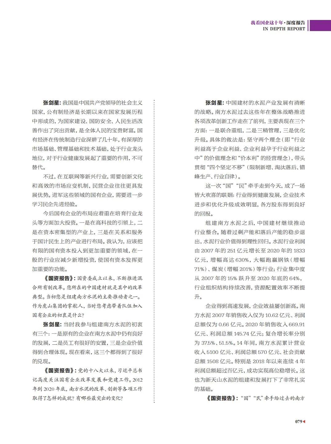 《国资报告》:党的十八大以来,习近平总书记高度关注国有企业改革发展和党建工作。2012年到2020年底,南方水泥的改革、创新等各项工作取得了怎样的成就?有哪些最突出的变化?