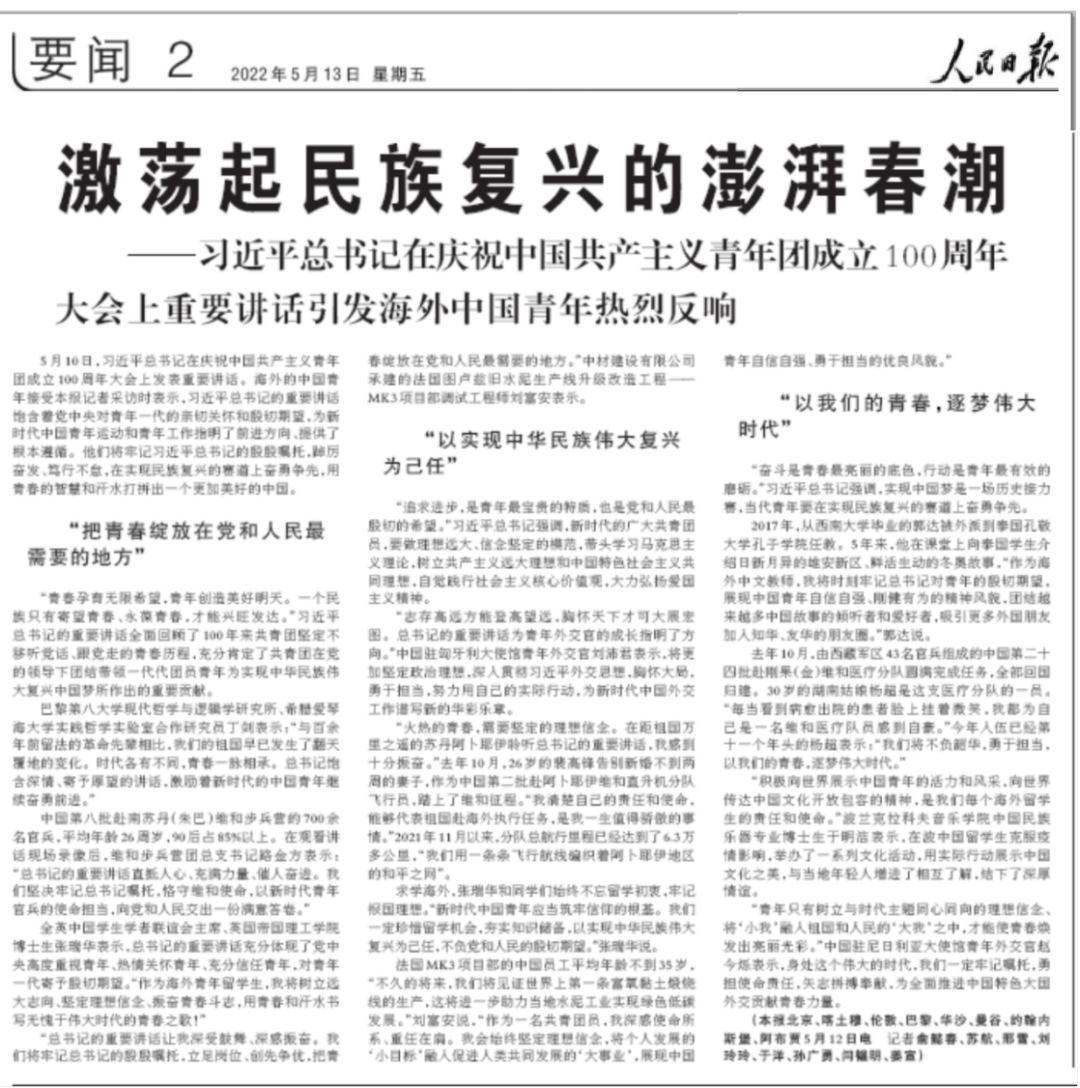 人民日报刊文《激荡起民族复兴的澎湃春潮》,中国建材海外青年榜上有名