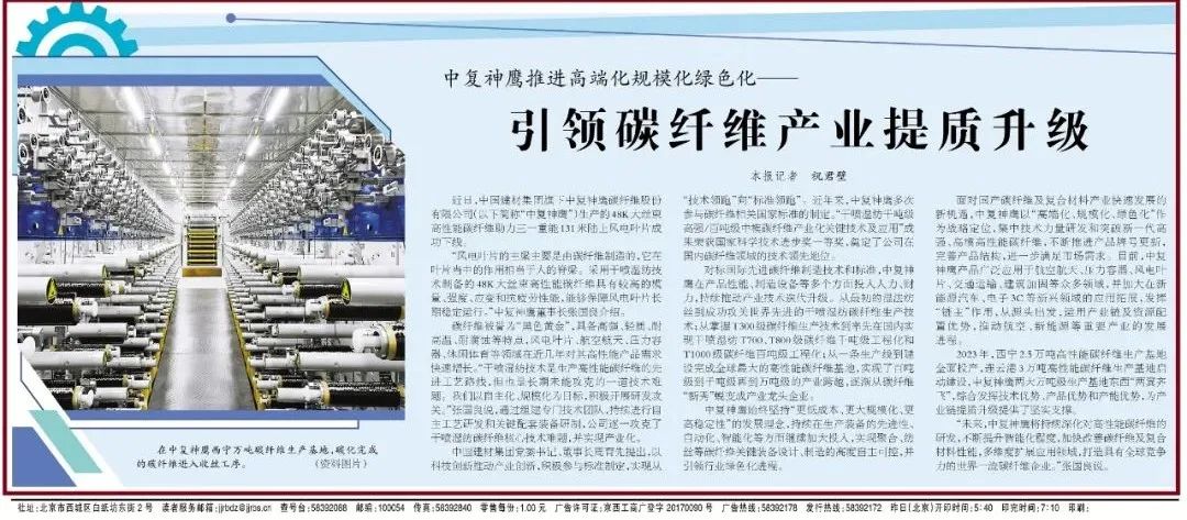 "db彩票最新版本" 《经济日报》:中复神鹰推进高端化规模化绿色化——引领碳纤维产业提质升级