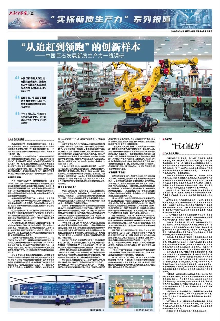 来源:上海证券报、中国巨石 发布时间:2024-07-18发展新质生产力是推动高质量发展的内在要求和重要着力点,中国建材坚持db彩票手机版引领产业创新,坚持两端发力,大力发展战新产业 db彩票官方,向新质生产力要新动能,今天为大家带来上海证券报的深度报道《“从追赶到领跑”的创新样本——中国巨石发展新质生产力一线调研》。