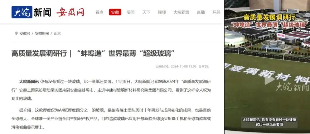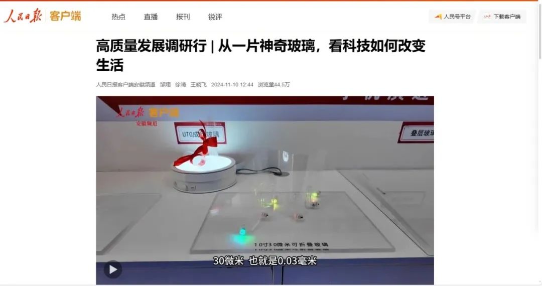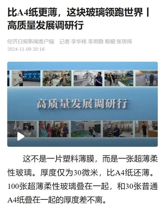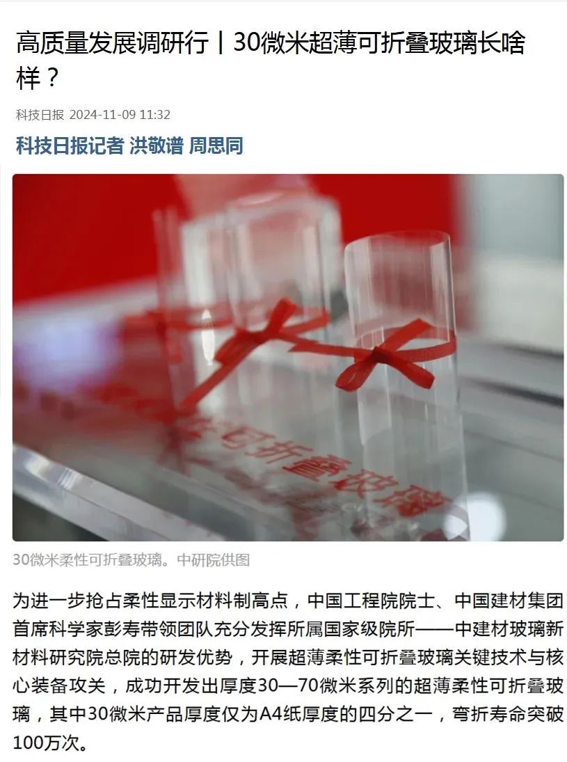 现场查看了超薄柔性玻璃等最新db彩票手机版成果