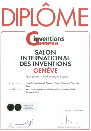 近年来,中国建材总院在3D打印领域接连取得创新成果,在2024年举行的第49届日内瓦国际发明展上 db彩票官网,中国建材总院团队自主研发的“基于3D打印混凝土的自动纵向配筋技术”获得金奖。