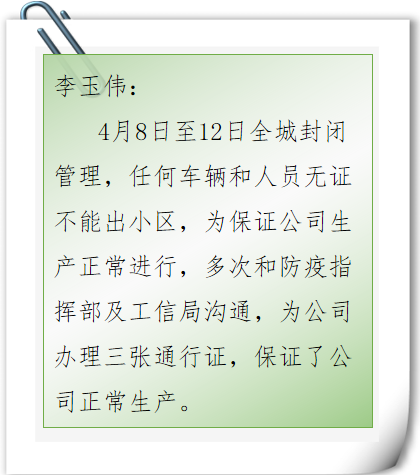 4月10日上午,国外销售部总经理王平作为志愿者正在G60高速上海方向防疫卡口进行志愿服务,此时他正和同事对接一对从上海运送化工原料的司机夫妻 db彩票官网,司机妻子的请求让他有一瞬的愣神,反应过来以后看着那双充满渴求的眼睛,他毫不犹豫决定“帮他们一把”,但按照闭环管理的防疫要求,外来货车司机全程不得下车,不得逗留,王平自己必须驾车带领货车一起去往厂区,采购物资的事只能寻求其他同志的帮助。