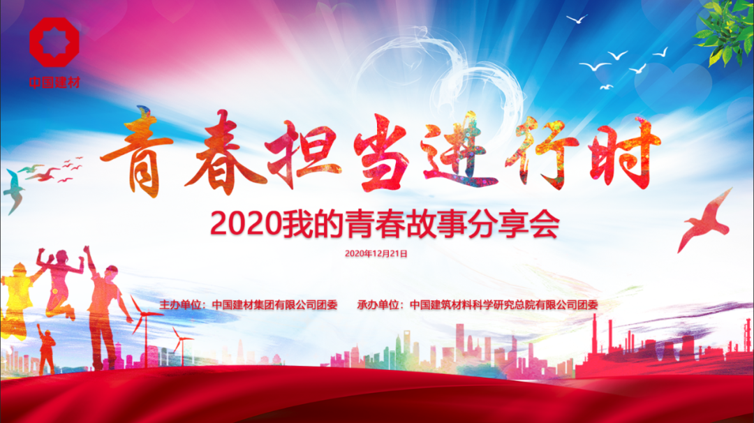 12月21日,中国建材集团团委举办“青春担当进行时——2020我的青春故事”分享会,分享青春故事 db彩票app下载,展现青年风貌,传递青春正能量,中国建材总院党委书记,董事长王益民,中国建材集团团委书记杨希,中国建材总院工会主席,党群工作部部长贾庆海出席活动。