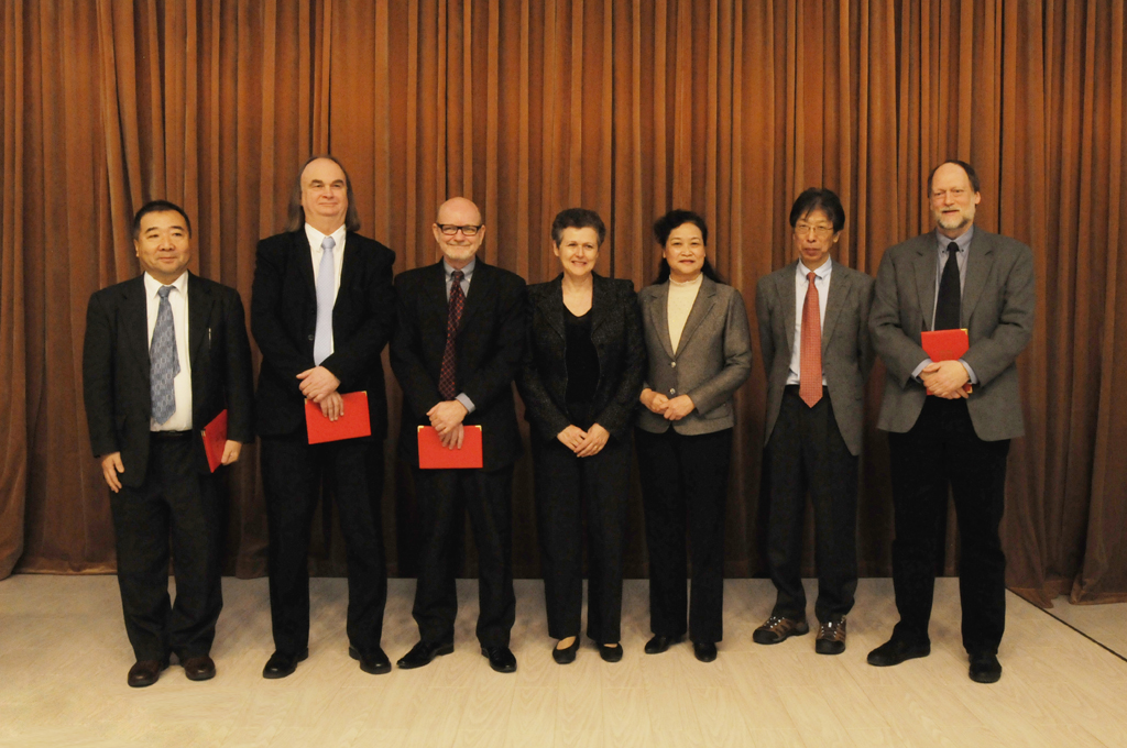 Harald Justnes,Olafur Wallevik,Duncan Herfort,Shunsuke Hanehara,Etsuo Sakai均是国际知名学者,在水泥混凝土领域皆有很高造诣,中国建材总院为了促进国际交流与合作,向国际一流迈进,特聘请这五位专家为总院客座教授 db彩票app下载,姚燕为他们颁发了聘书,并合影留念。