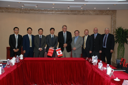 10月14日 db彩票官方,加拿大不列颠哥伦比亚省林业厅厅长Steve Thomson,副厅长Tim Sheldan等一行访问北新集团,北新集团党委书记刘贵平,副总经理于险峰与客人进行了会谈。
