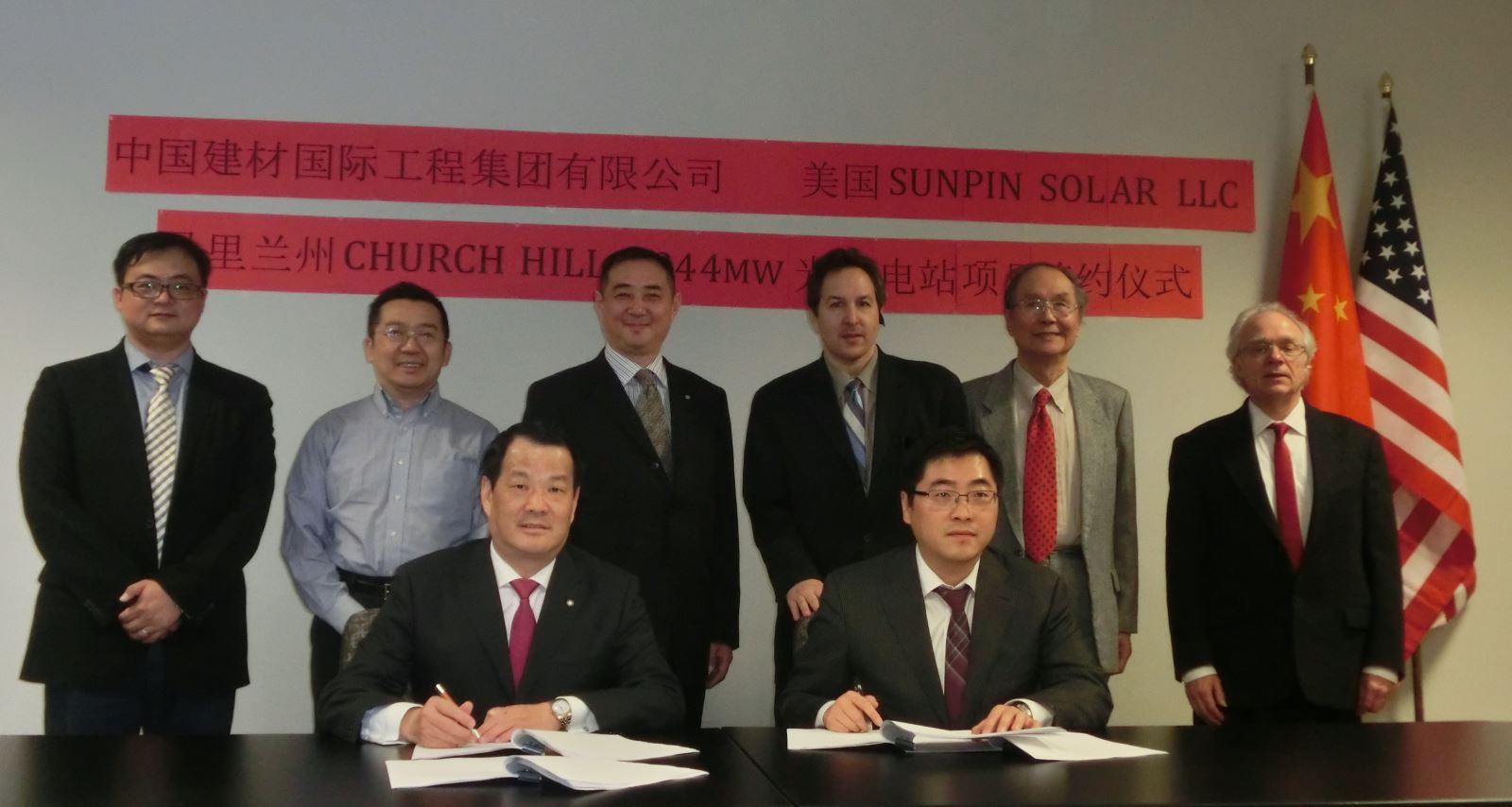 11月26日 db彩票官方,中国建材工程美国100兆瓦光伏电站项目合作签约仪式在纽约举行,中国建材工程董事长,总裁彭寿和SUNPIN SOLAR LLC公司总裁TOM LI分别代表公司签订了相关合同及协议。