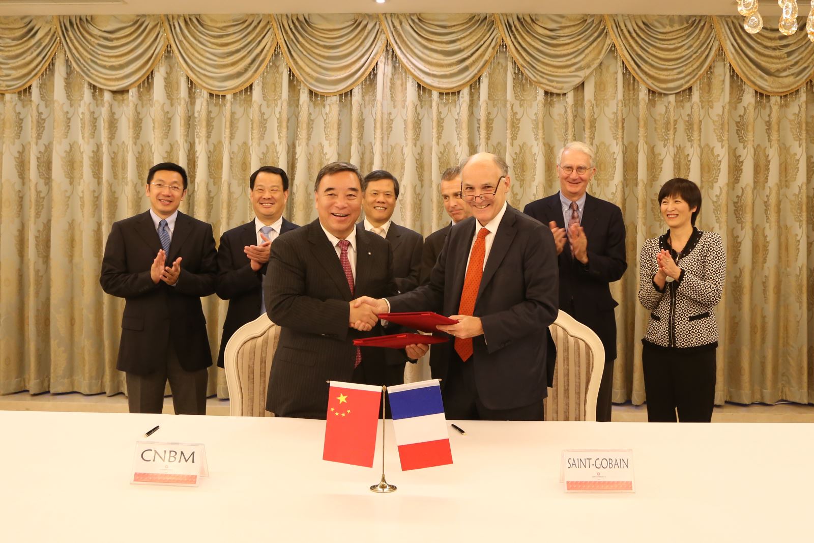 圣戈班高级副总裁PHELIZON db彩票安卓版,亚太区总代表GIMENO,中国建材集团副总经理郭朝民,中国建材股份副总裁,凯盛科技集团总经理彭寿,中国建材股份副总裁,北新建材董事长王兵等参加了会见。