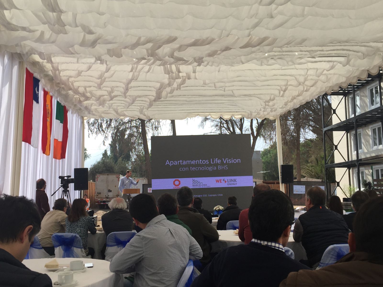 来自智利军方,智利住建部,欧洲桑坦德银行,智利银行以及智利,厄瓜多尔,哥伦比亚,阿根廷及乌拉圭的主要地产开发商及建筑公司代表共计50余人参加了庆典活动,仪式上 db彩票app下载,参会人员认真听取了项目的整体施工情况及主要设计思路,他们对“新房屋+新能源”的模式显示出极大兴趣,对中国建材工程国际化的经营理念和管理模式给予高度赞许,CNN CHILE 等主流新闻媒体均派记者报道了本次庆典活动。