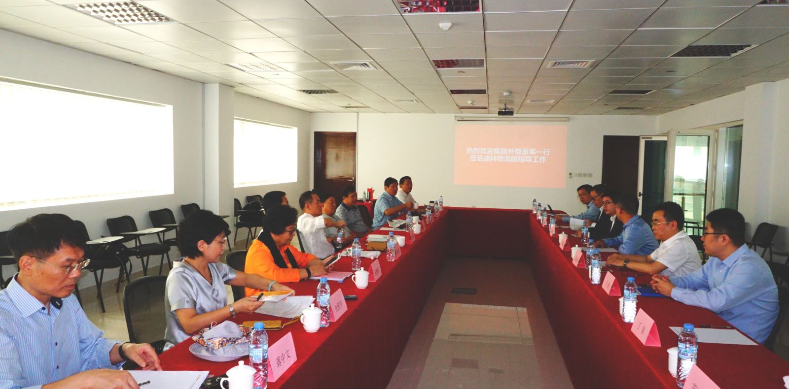 外部董事一行来到中建材进出口公司所属中国建材国际阿联酋公司仓储物流园(简称迪拜物流园)实地调研,从办公区,室内仓库到户外堆场,外部董事详细考察了物流园的整体运营状况,听取了中建材国际阿联酋公司总经理付廷涛的专题汇报 db彩票官网,详细了解了物流园的发展历程,组织架构,经营范围,业务模式,重点市场及典型项目,调研座谈会间,正在迪拜洽谈项目的中材国际所属中材海外董事长孟庆林也向外部董事简单汇报了公司经营发展情况,典型项目介绍以及未来发展思路,外部董事对两个公司取得的成绩及付出的辛苦和努力给予了肯定和赞扬。