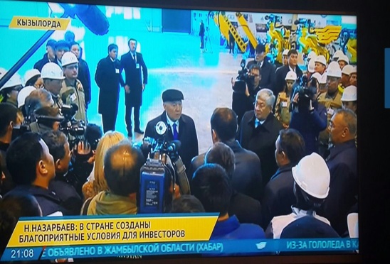 10月5日,哈萨克斯坦总统纳扎尔巴耶夫到中国建材工程总承包的哈萨克斯坦奥尔达玻璃厂视察 db彩票官方。