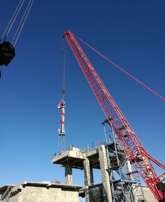 5月1日 db彩票官方,由合肥院监理的纳米比亚鲸石水泥公司二期熟料线建设工程窑尾框架第一根立柱顺利起吊安装就位,这标志着该项目设备安装工程正式开工,也标志着项目进入施工关键阶段。