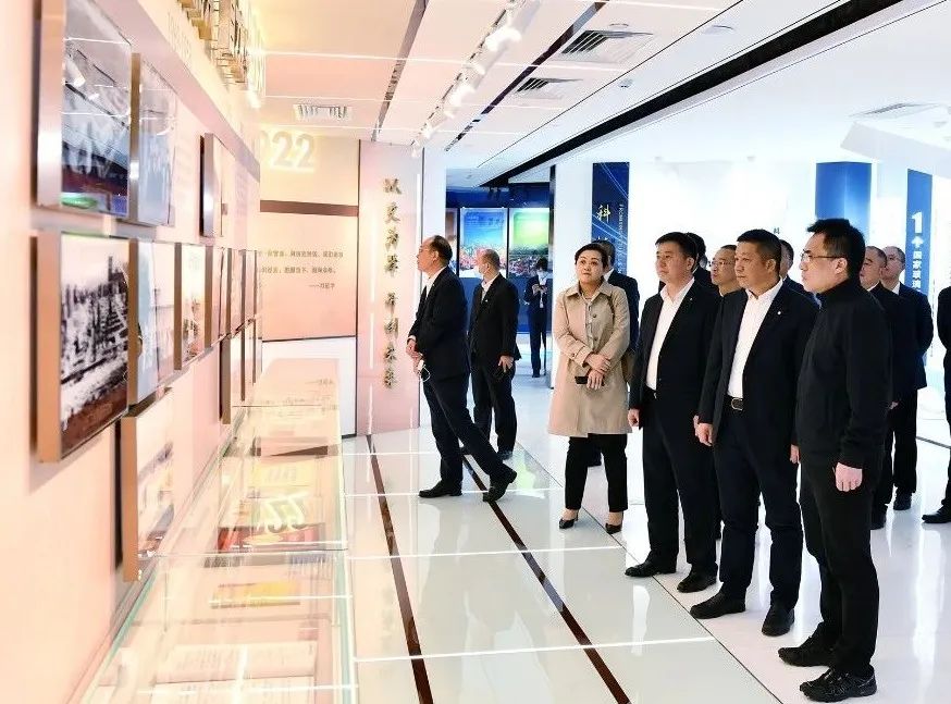 座谈会前 db彩票手机版,蔡国斌陪同于会文一行参观了集团展厅。
