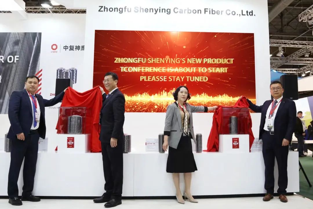 展会首日,中复神鹰现场举行了新品发布会,携新品SYT55S-24K,SYT45S-48K正式亮相,成为展会焦点,中国建材股份副总裁,中国复材党委书记,董事长薛忠民,中复神鹰总经理刘芳,副总经理李韦 db彩票平台登录,副总经理陈秋飞等出席发布会。