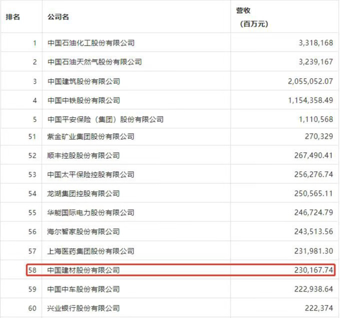 近日,2023年《财富》中国上市公司500强排行榜揭晓 db彩票官方,中国建材股份有限公司位居榜单第58位。
