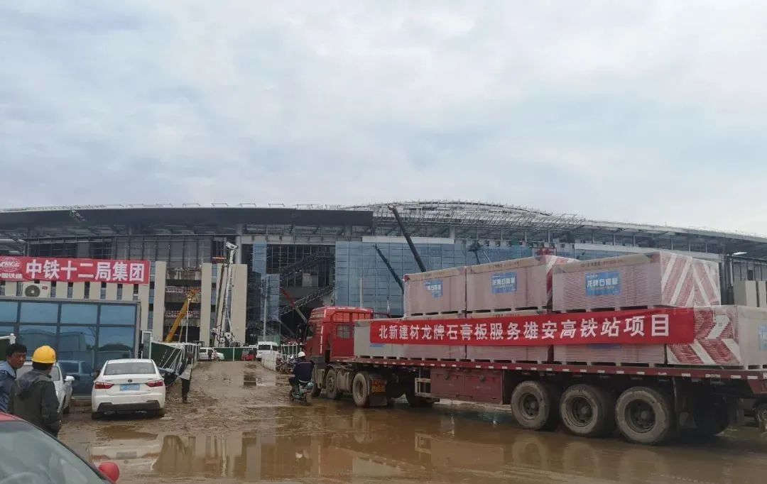 中国建材股份所属北新建材为雄安高铁站提供20000平方米龙牌石膏板及配套龙骨。