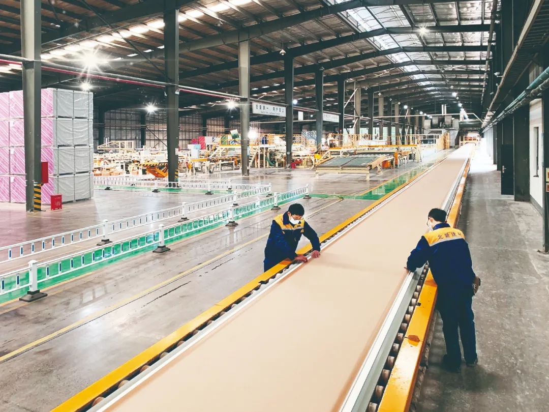 自主研发利用工业副产品脱硫石膏替代天然石膏生产纸面石膏板的关键技术和成套装备,原创研发全球领先的“近零排放”技术,生产过程实现大幅度节能减排。按照中国建材33亿平方米产能计算,每年可消纳3300万吨脱硫石膏,折合减排二氧化硫约1240万吨,减少碳排放约600万吨,产品替代实心粘土砖可以减少耕地破坏约5万亩。