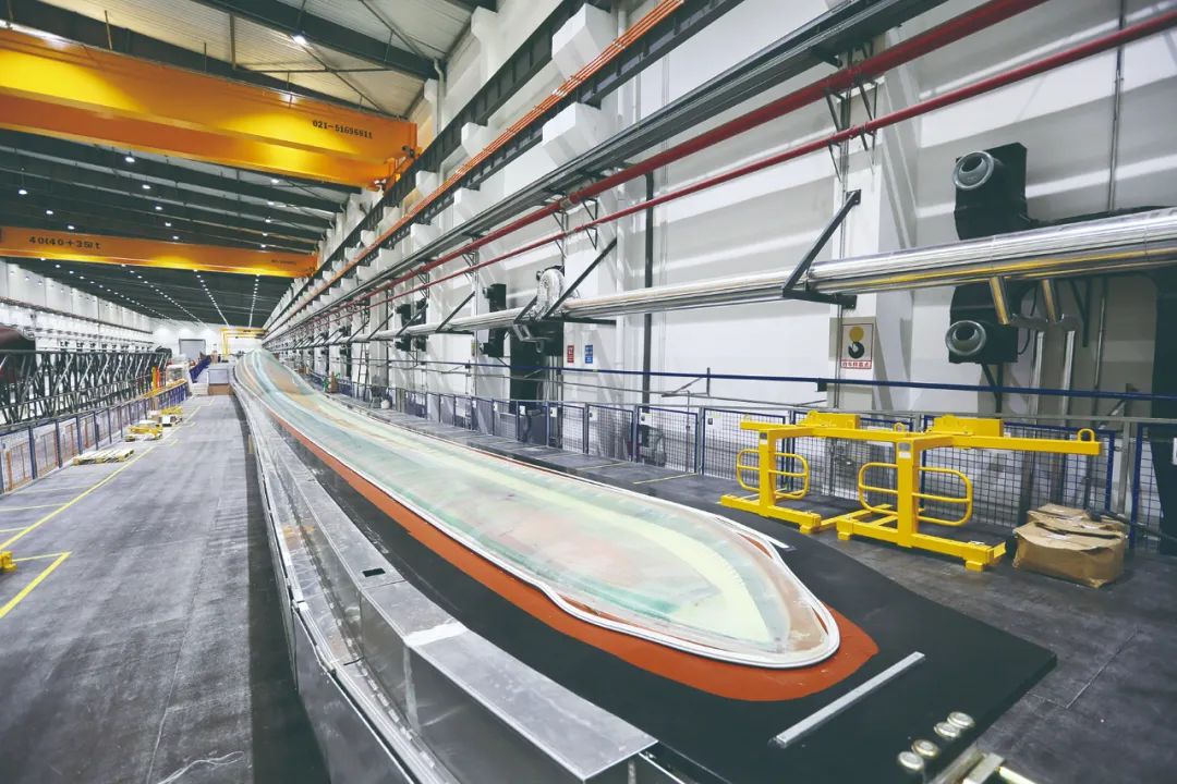 B75型海上风电叶片长75米,采用一体灌注成型技术,相比传统半模粘接工艺,无粘接和前后缘补强等设计,叶片重量同比减轻10%,质量可靠性高、运维成本低、作业现场环境更加友好。