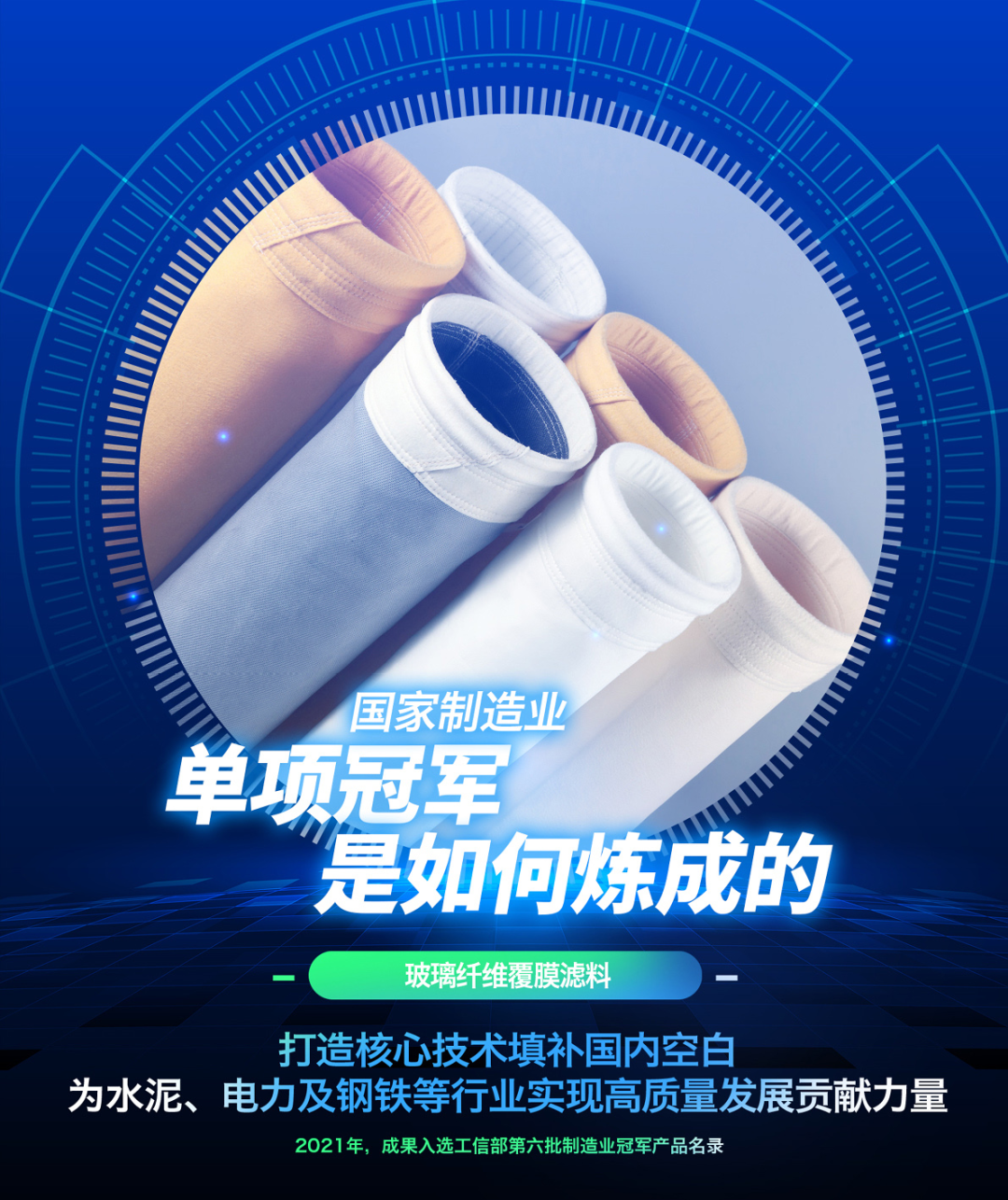 玻璃纤维覆膜滤料是南京玻纤院拥有自主知识产权的主导产品,是工业袋式除尘器的核心材料,其以玻璃纤维布 db彩票手机版,玻璃纤维复合毡为主要基材,与PTFE薄膜经热压工艺覆合而制成的一种过滤材料,具有耐高温,高效低阻的特效,它主要应用于电力,水泥及钢铁等行业的粉尘净化收集,南京玻纤院通过产品技术更新迭代,不断提高产品性能,打破了国外技术封锁和产品垄断,该技术产品推广以来为实现碳达峰,碳中和提供保障,促进我国水泥,电力及钢铁等行业实现可持续发展和高质量发展。