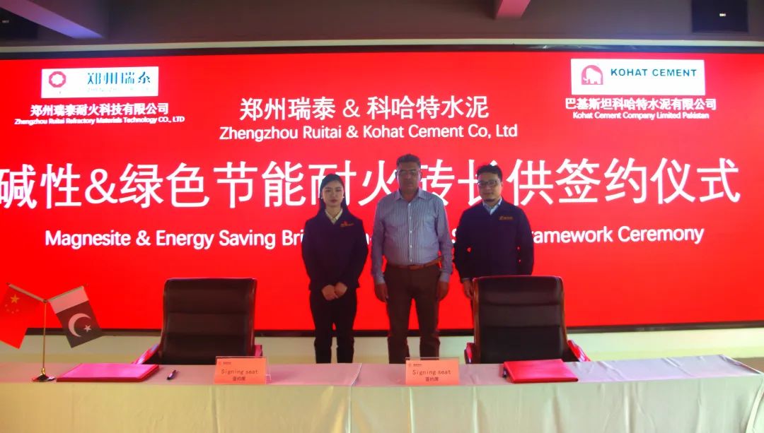 近日,集团所属郑州瑞泰同巴基斯坦科哈特水泥签署海外业务战略合作框架协议,郑州瑞泰自主研发的多系列低导热节能高温产品较好地解决了水泥窑散热损失高的行业难题,开创绿色发展新局面 db彩票注册入口,助力水泥行业绿色低碳转型发展,双方将在减碳节能环保方面进一步加深合作。