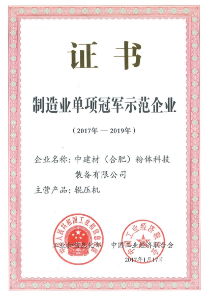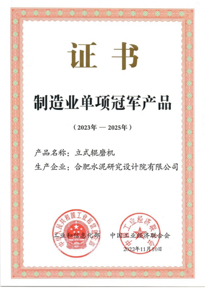 HFCG系列辊压机先后荣获国家科学技术进步二等奖,中国工业大奖提名奖,中国名牌产品,是国家工信部公布的首批制造业单项冠军产品,全球在用量超过1,800台套,是水泥行业唯一入选中央电视台纪录片《大国重器(第二季)》的主机装备,HRM系列立式磨荣获国家科学技术进步二等奖 db彩票官网入口,是第七批国家工信部公布的首批制造业单项冠军产品,同时,合肥院积极拓展装备的应用边界,向其他建材,化工,冶金,电力,煤炭,非金属和新能源等行业延伸,其中,立式磨在水泥外行业收入已约占50%。