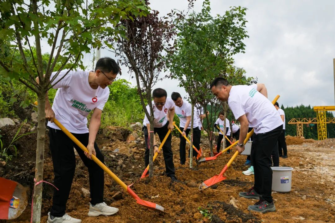 在植树现场,大家干劲十足,以饱满的热情共植黔南州州树——枫香树,搬苗提水,挥锹铲土 db彩票注册入口,填树入坑,共建低碳项目,共享"绿色银行",添彩美丽中国。