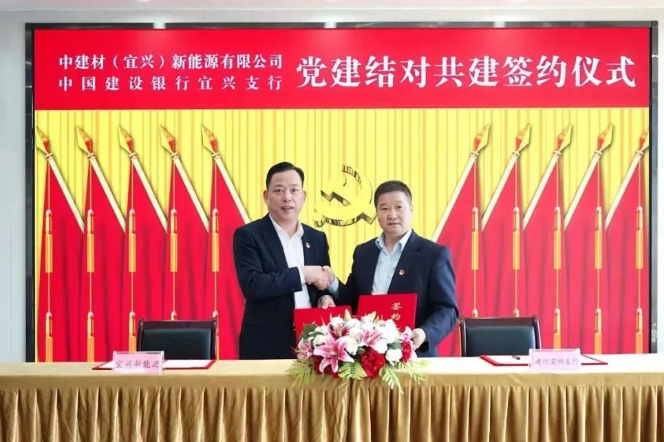中建材(宜兴)新能源与中国建设银行江苏省分行宜兴支行开展“联学党的二十大,银企共建促发展”党建结对共建活动 db彩票官网入口,探索新时代新形势下基层党建工作的新途径新方法。