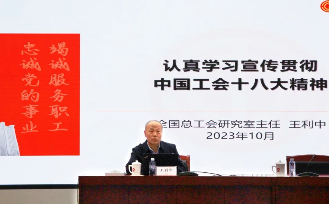 王利中指出,中国工会十八大,是在我国迈上全面建设社会主义现代化国家新征程 db彩票app下载,向第二个百年奋斗目标进军的关键时刻召开的一次十分重要的大会,是全国亿万职工群众和工会工作者政治生活中的一件大事,随后,他以事说,文说,数说,评说等形式,带领大家重温回顾了新时代以来习近平总书记关于工人阶级和工会工作发表的一系列重要讲话,作出的一系列重要指示,深刻阐释了习近平总书记在同中华全国总工会新一届领导班子成员集体谈话时的重要讲话精神,充分解读了蔡奇同志代表党中央所作的大会致辞,全面介绍了王东明同志代表全总十七届执委会所作的工作报告以及大会审议通过的《中国工会章程(修正案)》,也介绍了大会盛况,取得成效等,同时,他还围绕新时代工运事业和工会工作为什么要坚持党的领导,怎样坚持党的领导,怎样全心全意依靠工人阶级,建设什么样的工会,怎样建设工会等重大问题,以历史维度,时代维度,人民维度三个视角,与大家进行了分享。