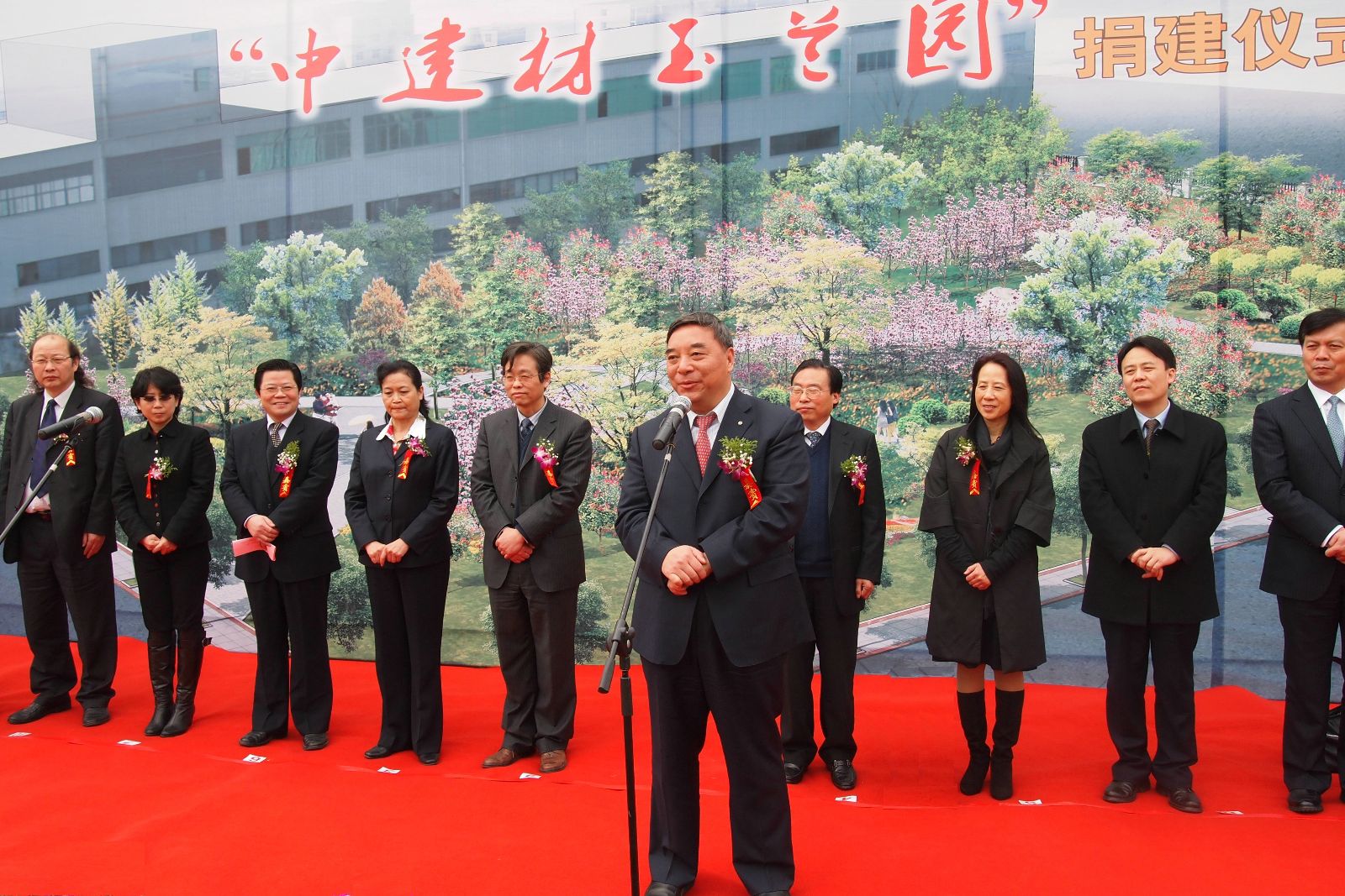 随后,双方领导一起来到武汉理工大学南湖新校园 db彩票官网入口,出席了“中建材玉兰园”捐建仪式。