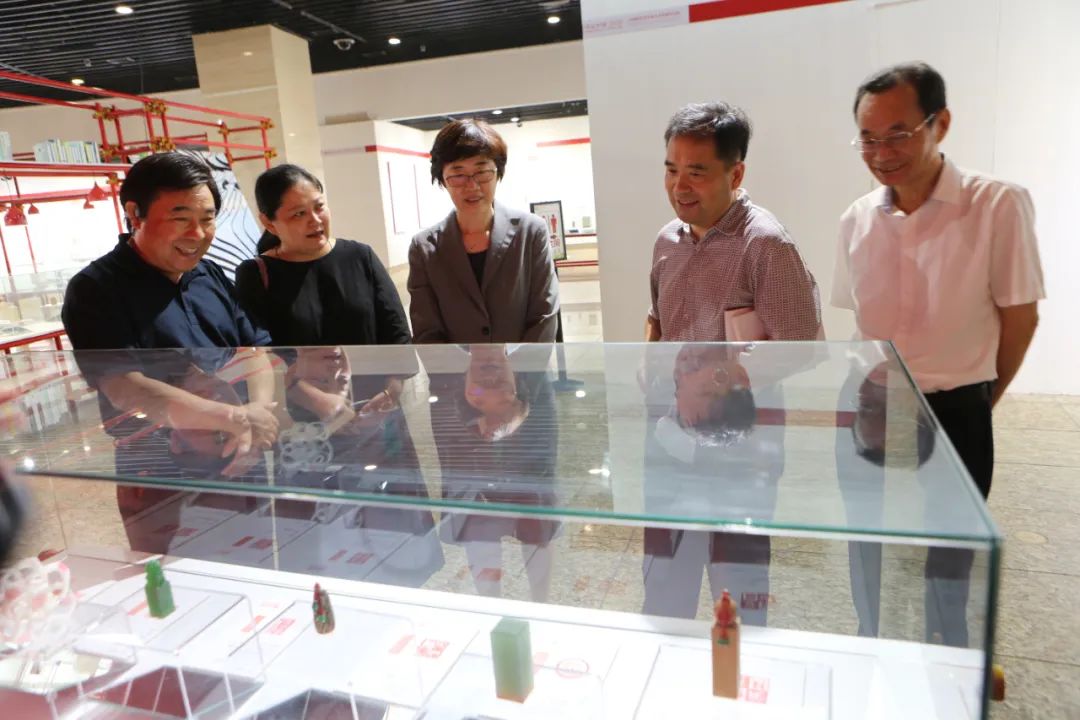 “这个印章的材质好漂亮,像青玉一样。是用真的玉篆刻的吗?”在灯火通明的玻璃展示架前,有游客询问讲解人员。