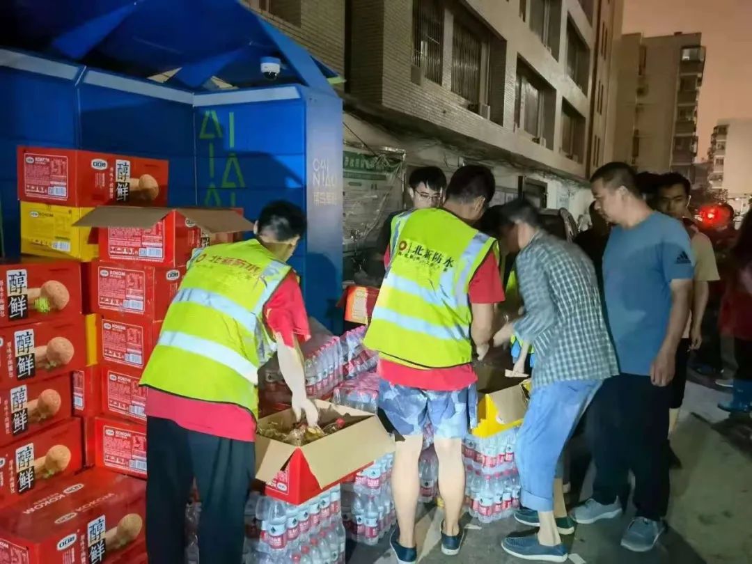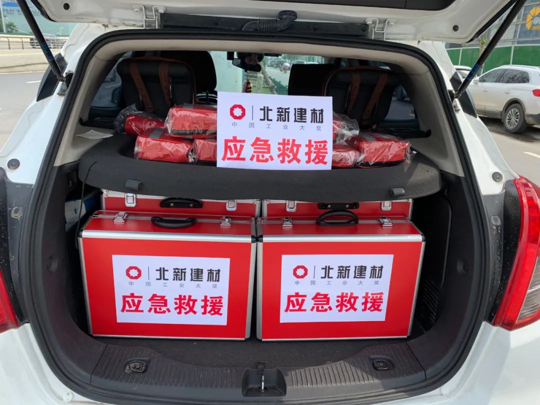 所属北新建材北方公司中原运营区组织人员向被困人员及经销商提供救急物资。