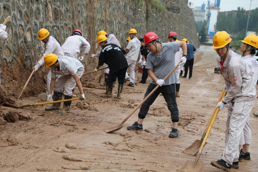 ▲登封中联党员先锋突击队在郑州配合开展排涝救灾工作
