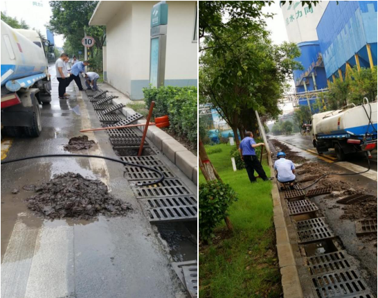 ▲所属黄河同力水泥疏通水渠、对路灯接线端安全检查