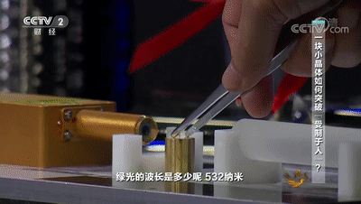 我这里有一小块晶体,比米粒大一点,看上去并不稀奇 db彩票正版下载,它要解决什么问题呢,实际上主要解决当时我们国家光刻用的光源问题,当时我们国家还在用(近)红外激光,当时想如果这个光刻的线路要变窄的话,有没有绿光,蓝光,紫光,而这一块晶体就解决了这一问题,能够使我们眼睛看不见的(近)红外激光,通过这一块晶体后,自动转化成绿色激光。