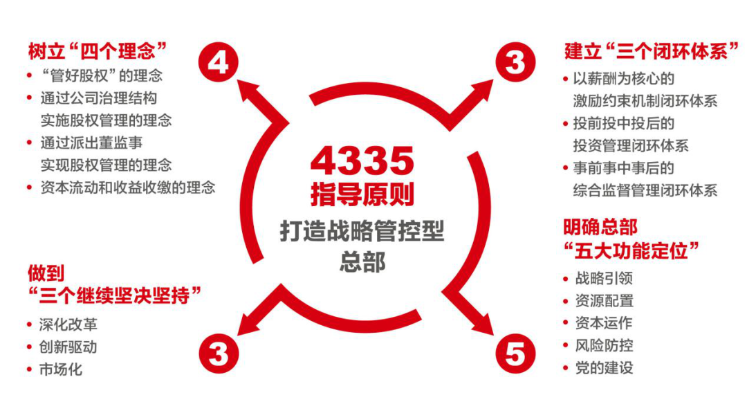 2019年9月,我们获批国有资本投资公司改革试点,2020年2月,我们确立了集团和总部‘4335’指导原则。在“4335”指导原则下,集团党委又制定印发了符合集团特点的“1345”党建工作体系,作为全级次党组织加强和改进db彩票ios版的基本任务。