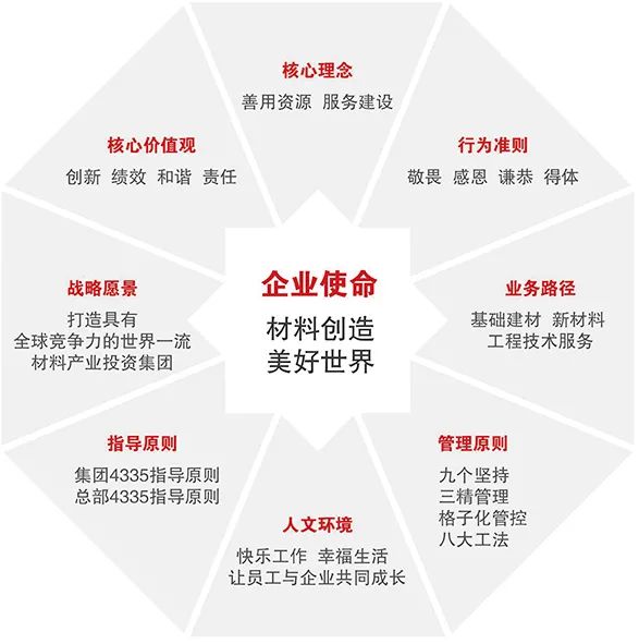 中国建材集团新发布的《db彩票安卓版手册》中,增加了“材料创造美好世界”这一企业使命。聚焦在这一使命下,中国建材集团不断通过创新突围、突破,致力于提供高端、智能、环保、安全的高质量产品和高品质服务,推动经济社会更好发展,在加快培育具有全球竞争力的世界一流材料产业投资集团的新征途上奋勇前行、再谱新篇!