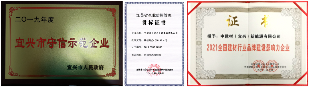 宜兴新能源自成立以来始终坚持将诚信贯穿于经营始终,以诚信立足市场,以诚信谋求发展 db彩票官网,以诚信赢得口碑,在产品质量,合同履约,客户服务等方面持续发力,努力擦亮诚信经营“金字招牌”,荣获了“全国建材行业品牌建设影响力企业”“江苏省企业信用管理贯标证书”“宜兴市守信示范企业”等荣誉,受到社会各界的认可和赞誉。