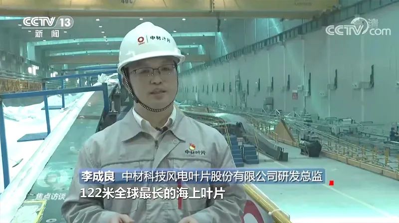 中材科技风电叶片股份有限公司研发总监李成良说:“现在正在生产的是122米,全球最长的海上叶片,这个叶片采用了最先进的高性能翼型和碳纤维拉挤技术研发而成,” db彩票安卓版。