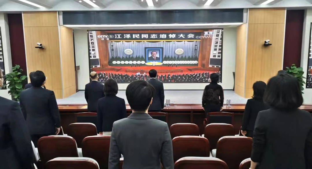 来源:集团党群工作部 发布时间:2022-12-0712月6日,党中央,全国人大常委会,国务院,全国政协,中央军委在北京人民大会堂隆重举行江泽民同志追悼大会,集团党委书记 db彩票官方,董事长周育先在人民大会堂现场参加追悼会,集团和股份领导班子成员,总部干部员工怀着极其沉痛的心情收看了追悼大会现场直播。